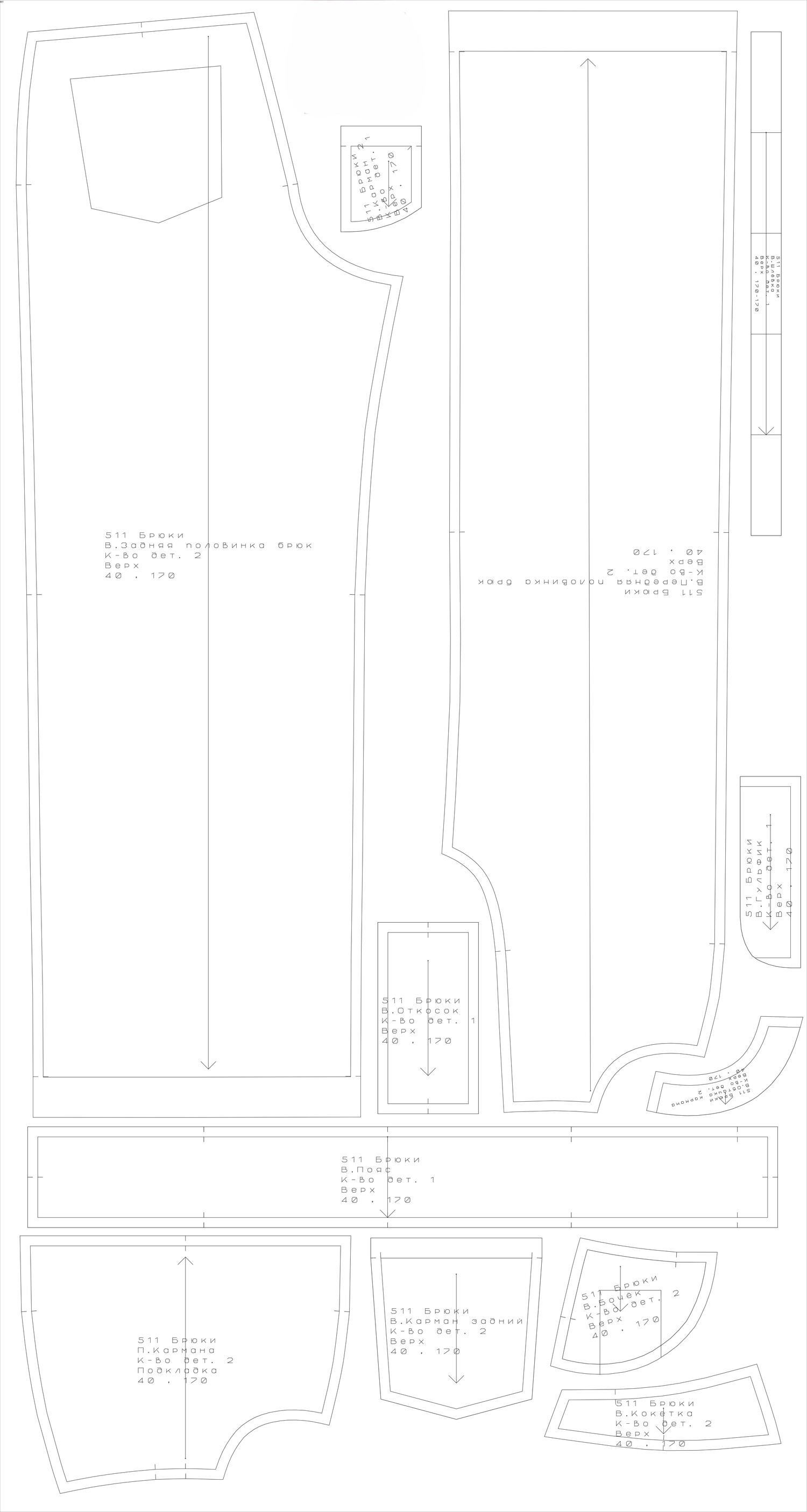 Выкройка брюк/джинсов, размеры 34-54