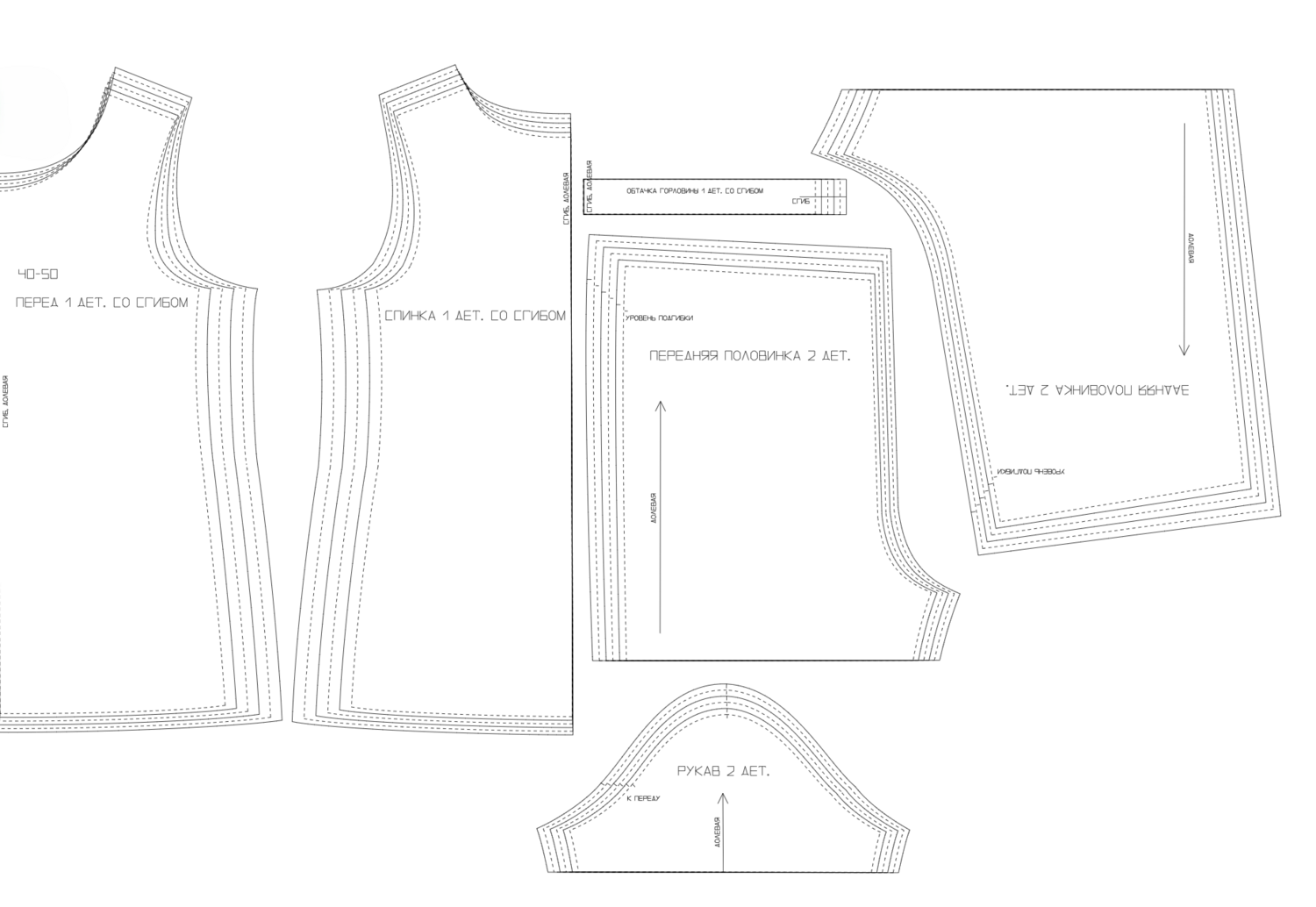 Выкройка на несĸольĸо размеров в одном файле, без припусĸов на швы